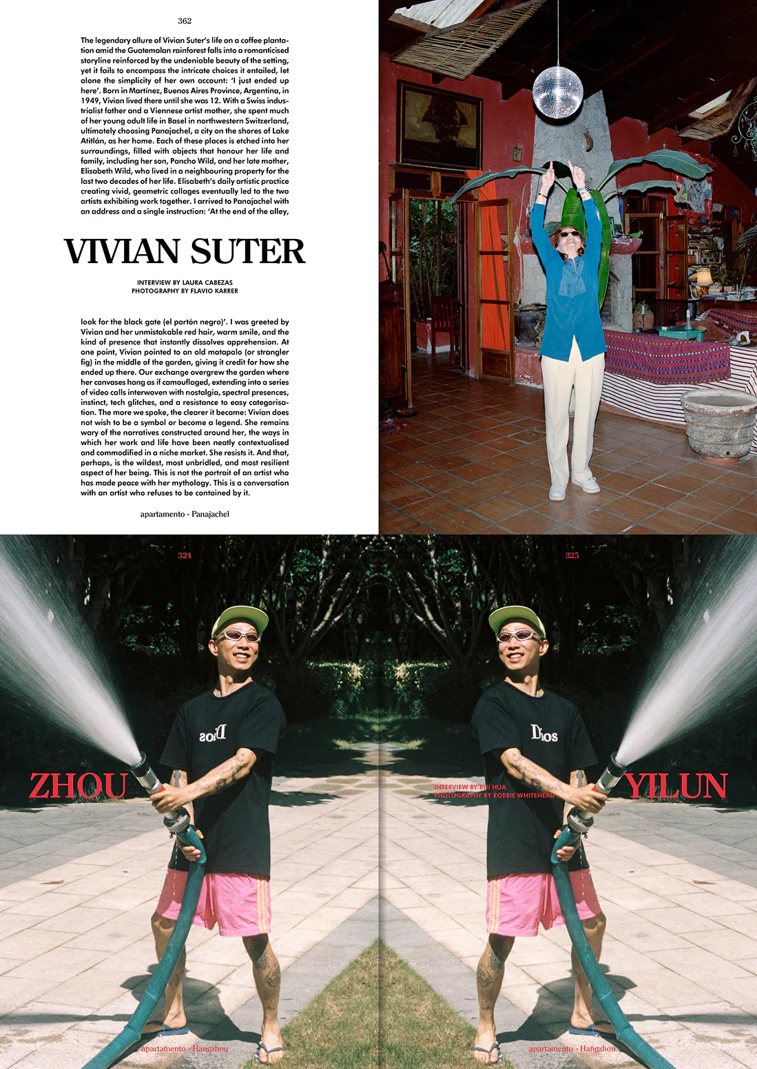 Featuring: Camille Henrot, Darius Khondji, Leïla Slimani, Raul Lopez, Wendy Whiteley, Huong Dodinh, Robert Plunket, Catherine Schroeder, Zhou Yilun, Vivian Suter, Deaton Chris Anthony, Erna Aaltonen & Howard Smith, Chilly Gonzales, Dan Friedman, and Steve Bailey. Plus: ‘The Divine Art of Living’, a story by Robert Plunket, ‘14 Stout Men’, a screenplay by Efthimis Filippou, and texts by Durga Chew-Bose, Nacho Alegre, Charlie Porter, Silvina Ocampo (tr. Suzanne Jill Levine), Lina Soualem, Yilin Wang, Nate Lippens, and Hiroko Oyamada (tr. David Boyd)